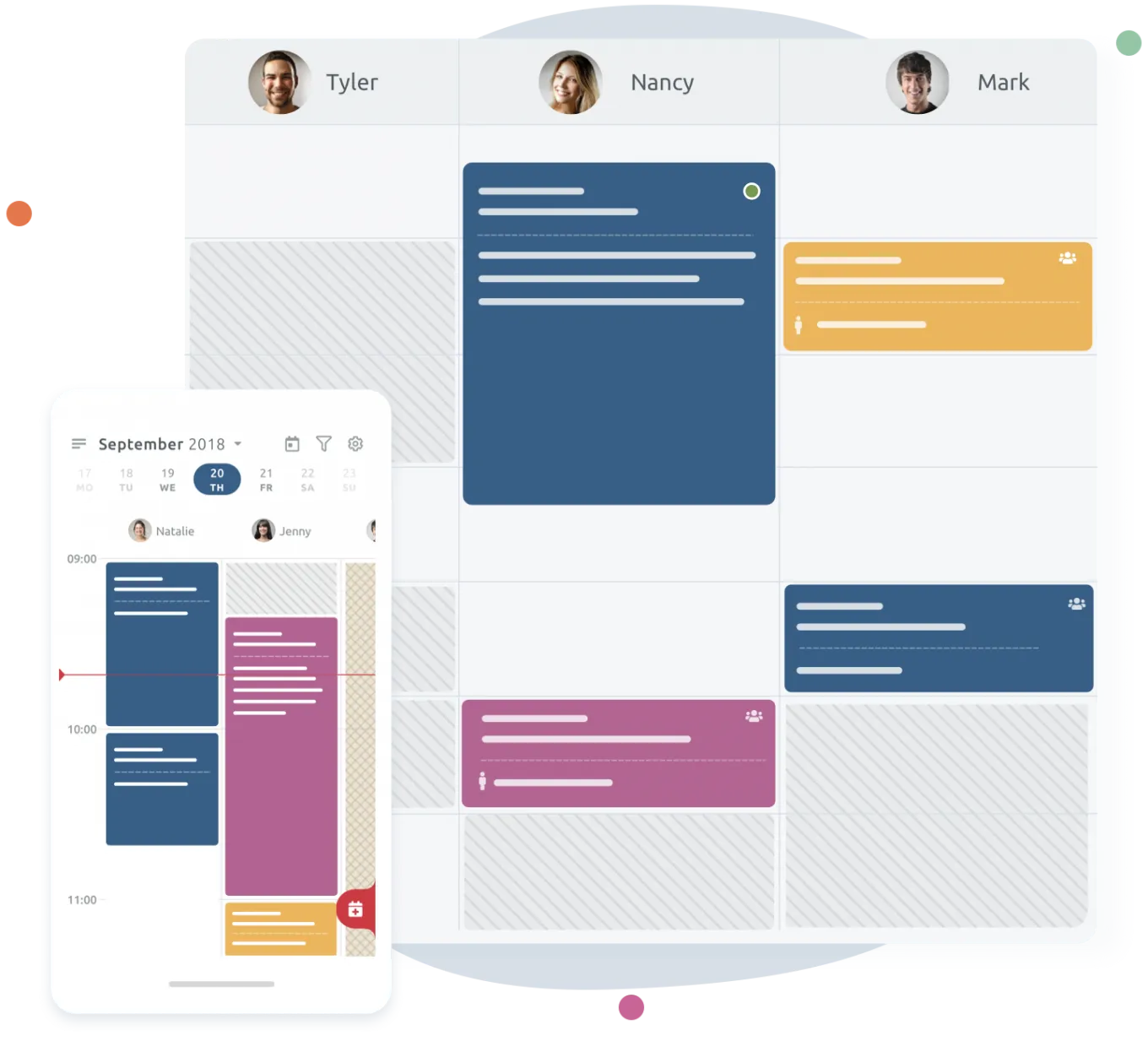 'Incoming bookings' marked in the calendar when an appointment is under way to avoid double bookings.
